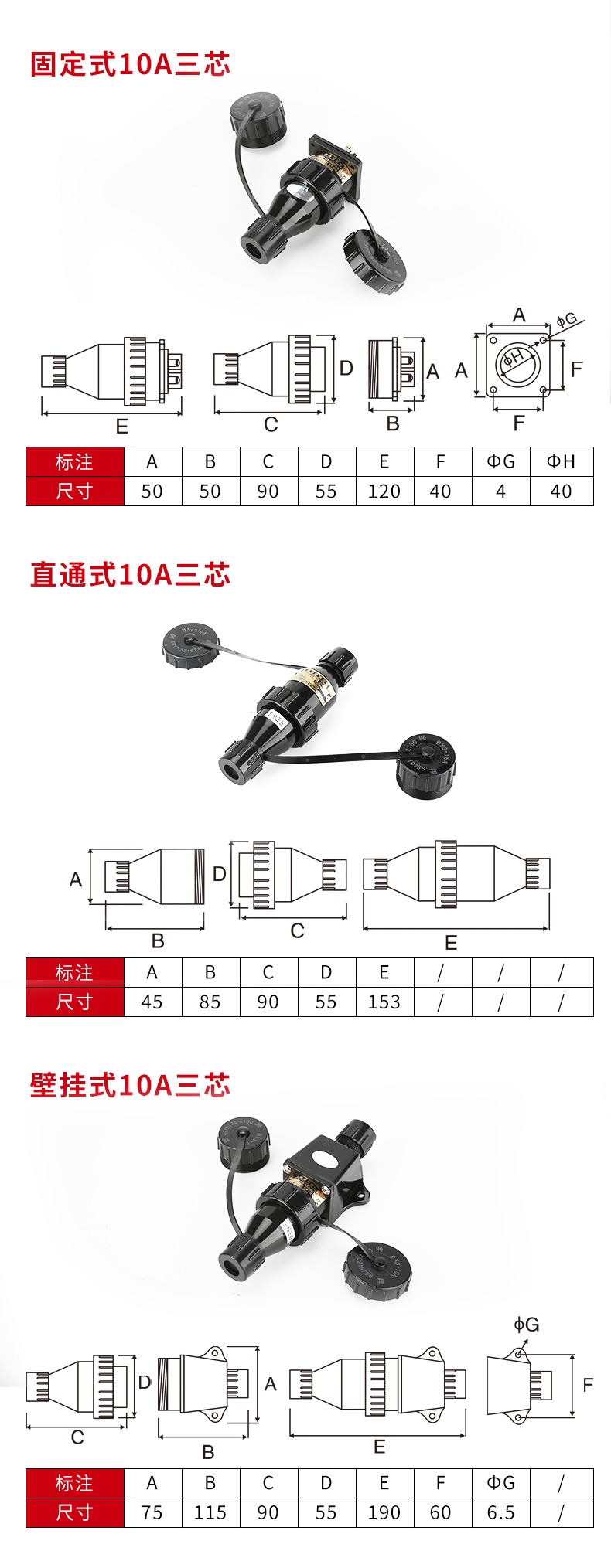 • 三芯10A
